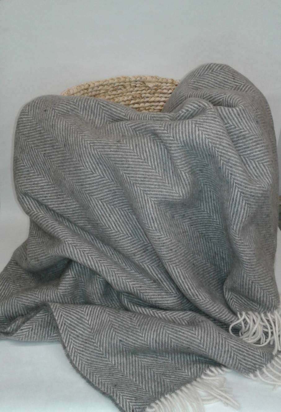 Dark grey and cream herringbone weave throw. 100% Lambswool